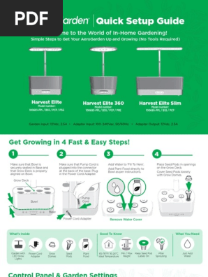 AeroGarden Harvest Elite Grow Light. This manual is available in the following languages. Simple Steps to Get Your AeroGarden Up and Growing No Tools Required Harvest Model number.